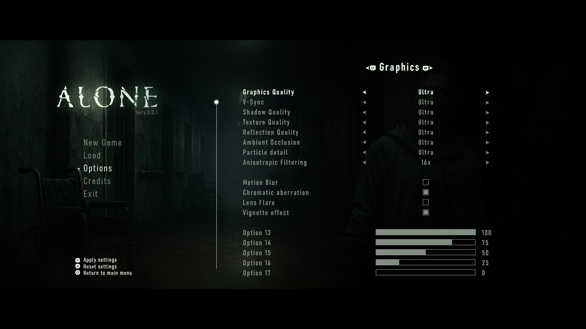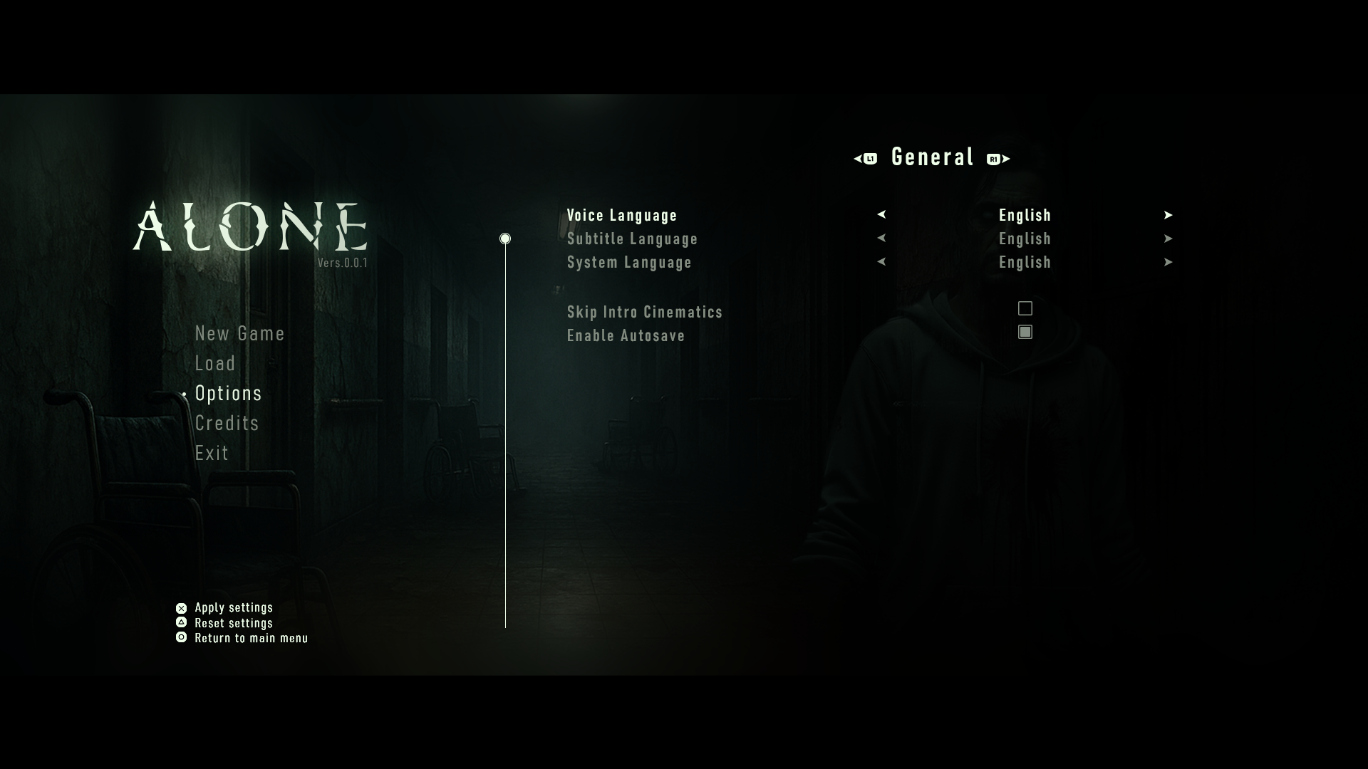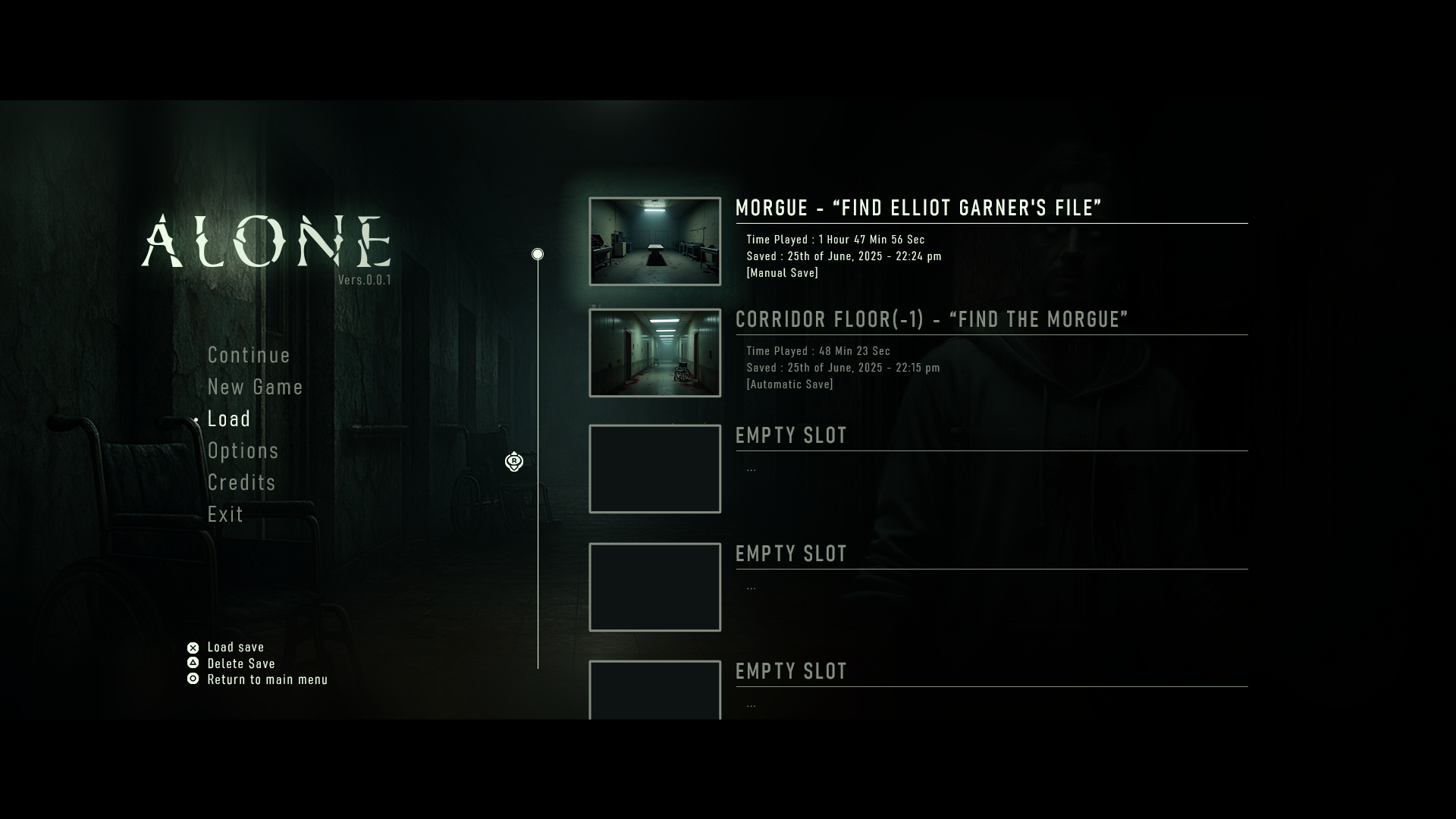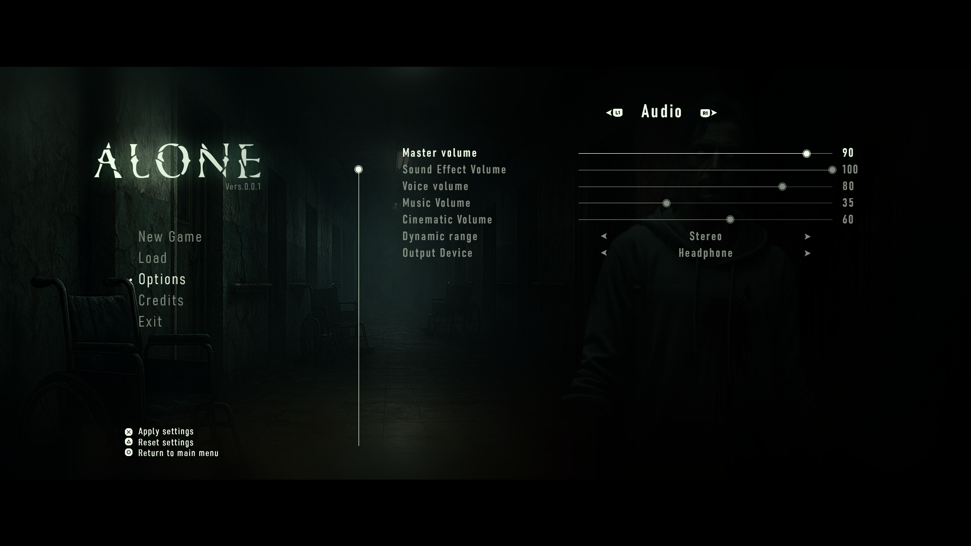 Pour Alone, un projet de jeu vidéo indépendant mêlant horreur psychologique et narration immersive, j’ai été chargé de concevoir une interface complète — du main menu aux options système, en passant par l’écran de chargement et les systèmes de sauvegarde.